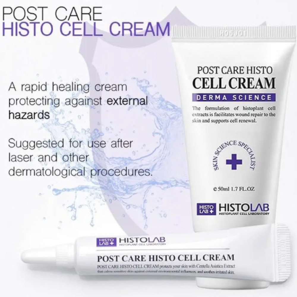 Післяпроцедурний крем HISTOLAB Post Care Histo Cell Cream — це відновлюючий засіб, розроблений для інтенсивного заспокоєння, зволоження та регенерації шкіри після косметологічних процедур (пілінгів, лазеру, мезотерапії, мікронідлінгу тощо). Завдяки вмісту епідермального фактора росту (EGF) стимулює клітинне оновлення, сприяє загоєнню мікропошкоджень і зменшує подразнення. Підходить для чутливої, ослабленої або подразненої шкіри.