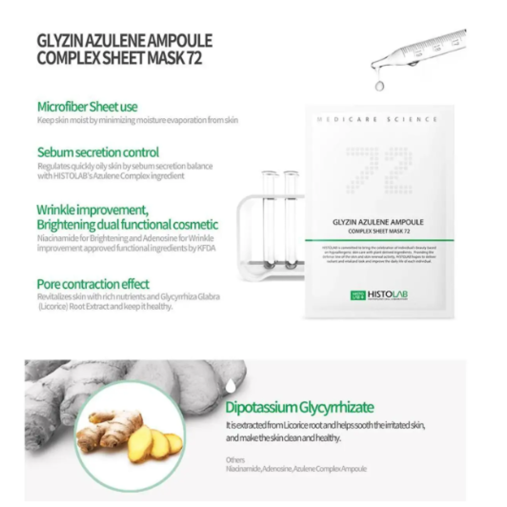Histolab Glyzin Azulene Ampoule Complex Sheet Mask 72 Маска на нетканній основі для проблемної та роздратованої шкіри.