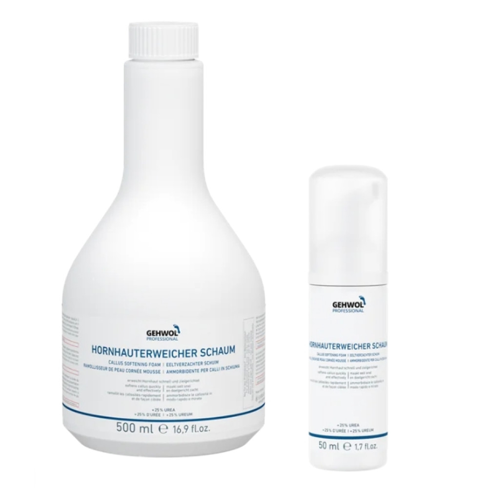 Пінка для ніг Gehwol Fusskraft Hornhauterweicher (Геволь) — ефективний засіб для розм’якшення мозолів, огрубілої шкіри стоп та підготовки до апаратного або механічного педикюру. Завдяки активним компонентам — сечовині (Urea), натрію гідроксиду, пантенолу, гліцерину та воді — засіб швидко й безпечно пом’якшує ороговілі клітини, полегшуючи їхнє видалення без травмування. Ідеально підходить для професійного використання майстрами педикюру, а також для домашнього догляду за стопами.