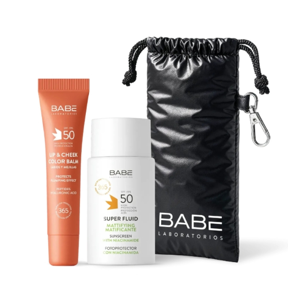 FACE & LIPS NUDE SET - универсальный набор для ежедневной защиты и легкого натурального макияжа. Он сочетает высокоэффективный матирующий флюид SPF50, тинт в оттенке NUDE для губ и щек и стильный брендированный чехол для очков в подарок.