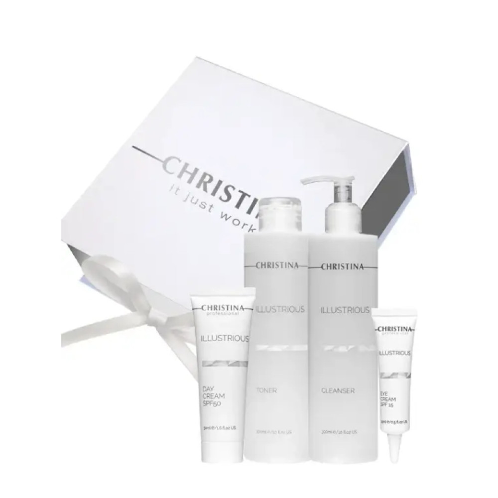 Большой подарочный набор ILLUSTRIOUS для полноценного ежедневного ухода за кожей из четырех средств.