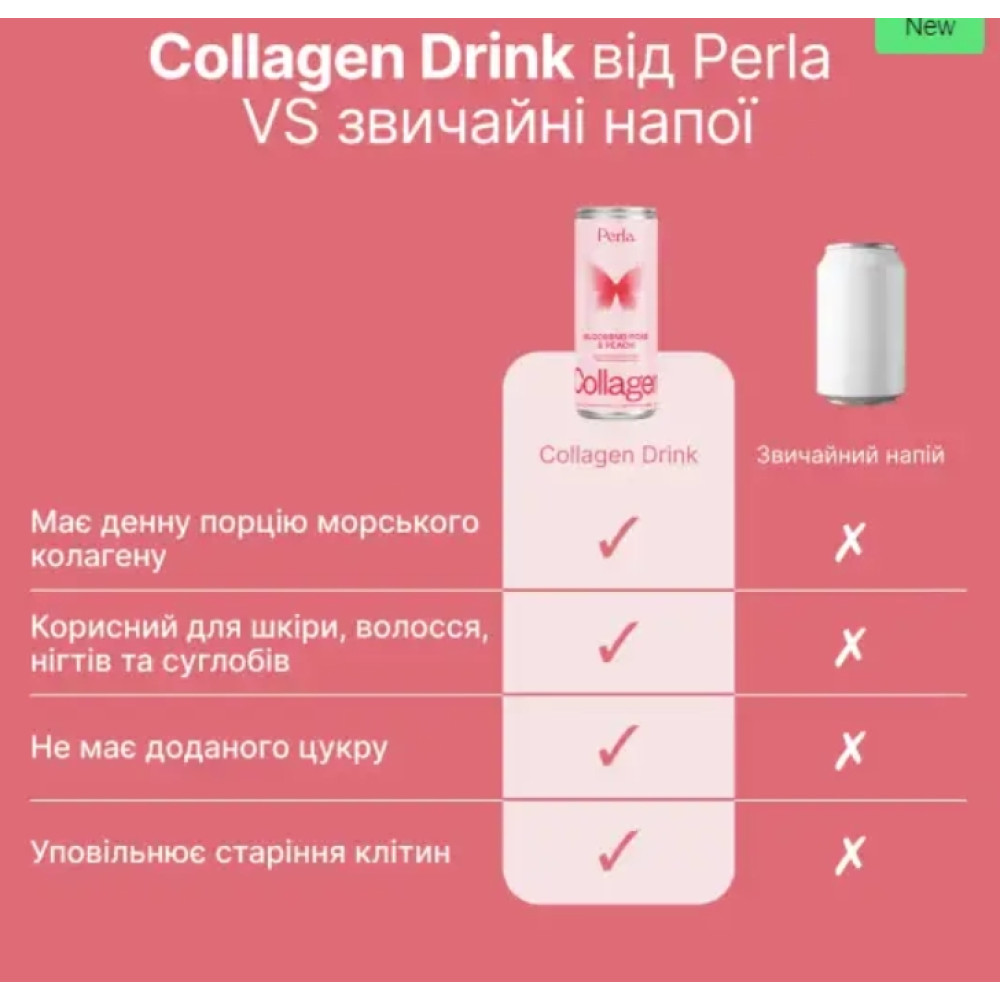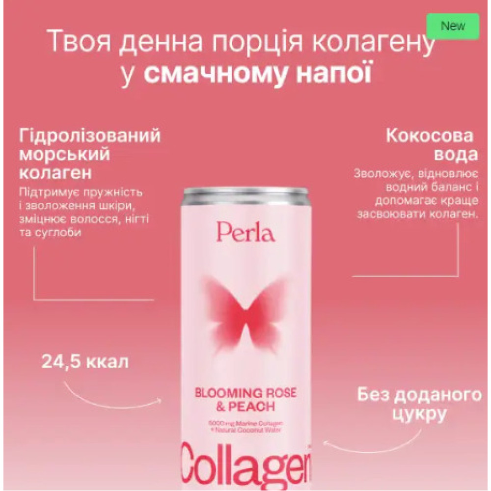 Вода питьевая, кокосовая вода натуральная (10%), сок яблочный концентрированный (10%), подсластитель: эритритол, гидролизованный морской (рыбной) коллаген (2%), регулятор кислотности: кислота яблочная, натуральные ароматизаторы: персик, роза, краситель натуральный: экстракт черной моркови, консерванты: сорбат калия, бензоат натрия.