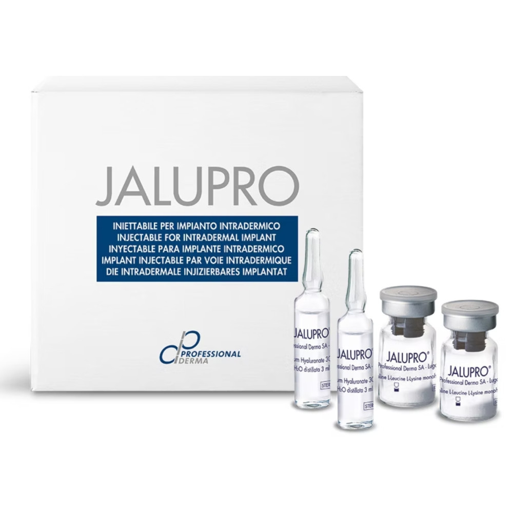 Итальянская компания Professional Dietetics S.r.l., специализирующийся на производстве медицинских, косметологических, спортивных продуктов на основе аминокислот, выпускает два средства для инъекционной биоревитализации на основе гиалуроновой кислоты и аминокислотного коктейля: Jalupro и Jalupro HMV. По составу они одинаковы, различаются расфасовкой и структурой ГК: в первом мезокктейле используется низкомолекулярная гиалуроновая кислота плотностью 1%, во втором – высокомолекулярная, с концентрацией 1,3%.
