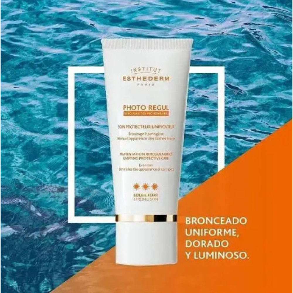 Избавиться от пигментации во время загара – это возможно с уникальным кремом от бренда Institut Esthederm. Активная формула средства разработана на основе патента модуляции света UV INCELLIUM TECHNOLOGY, который нейтрализует вредное воздействие ультрафиолета и позволяет клеткам получить от солнца только полезное действие, а также технологии PHOTOREVERSE, которая объединила защитные и осветляющие свойства, благодаря которым кожный покров избегает появления пигментации даже в период интенсивного излучения. Состав обогащен клеточной водой - компонентом, который омолаживает и энергизирует эпидермис.