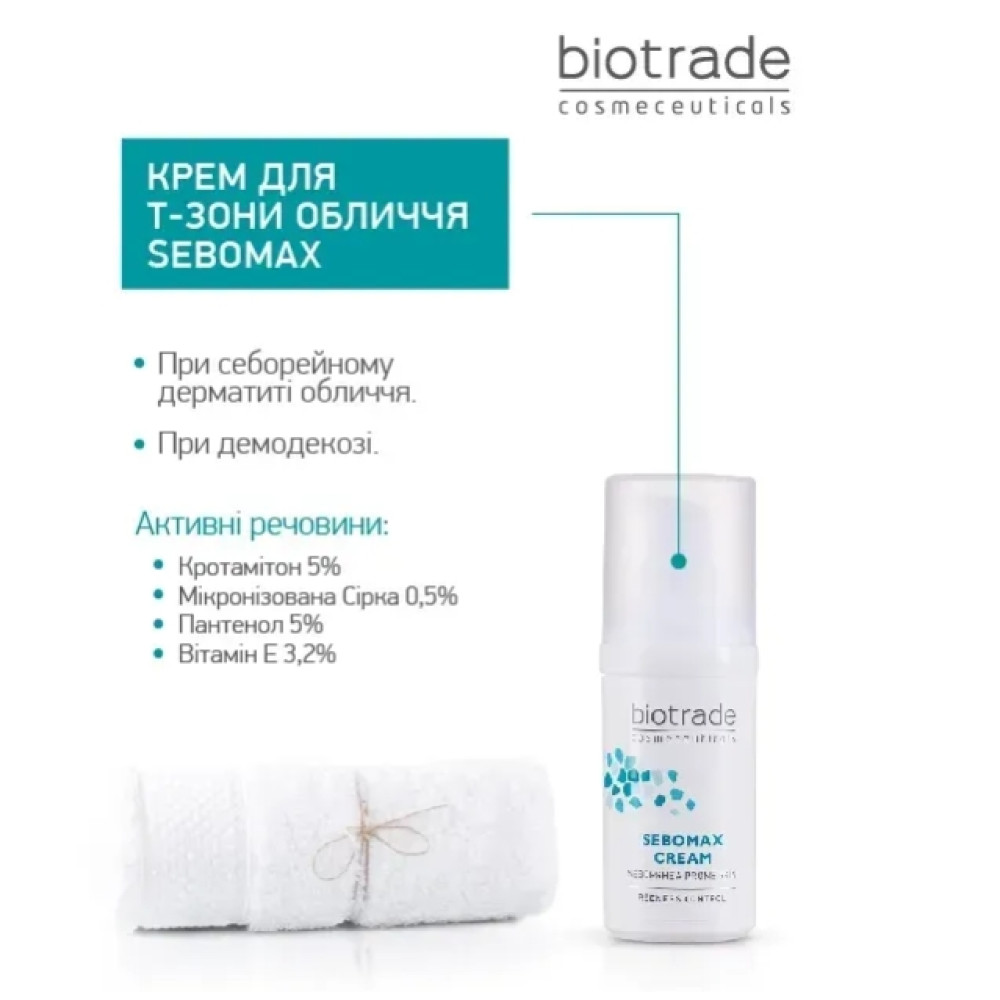 Крем Sebomax - это нежный успокаивающий крем для жирной, раздраженной кожи, шелушащейся в Т-зоне лица (подбородка, нос и лоб). Средство нормализует работу сальных желез, восстанавливая здоровое состояние кожи и даря сияние здоровьем и бережное увлажнение.
