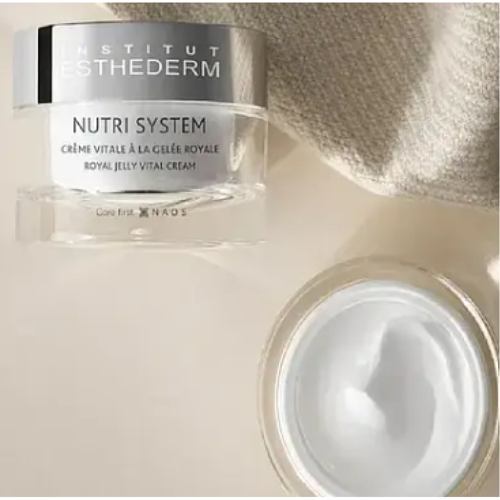Благодаря экстракту маточного молочка крем обеспечивает питание и восстановление тусклой истощенной кожи с пониженным защитным потенциалом. В состав маточного молочка входят незаменимые углеводы, жиры, аминокислоты, фруктоза, глюкоза, витамины В1, В2, В6, С, РР, а также множество полезных минералов: кальций, магний, цинк и другие.