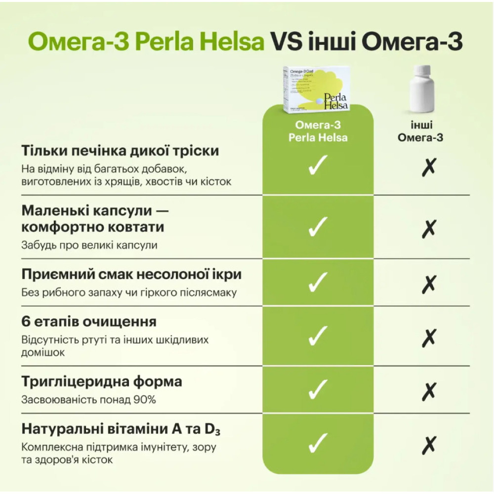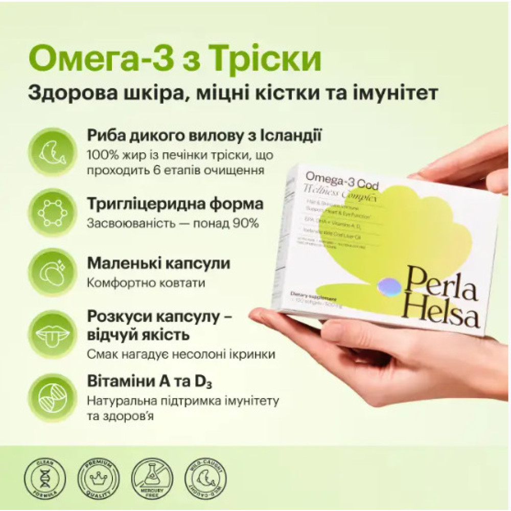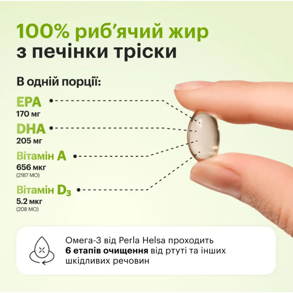 - Состав: 100% рыбий жир из печени трески (Исландия), желатин (Германия), глицерин (Чехия)
