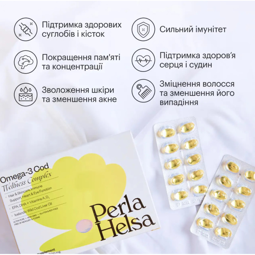 В составе - 100% рыбий жир из печени трески. Благодаря сочетанию EPA и DHA кислот, а также натуральных витаминов A и Dз, Омега-3 поддерживают красоту кожи и волос, уменьшают воспалительные процессы, укрепляют иммунитет, а также отвечают за здоровье зрения, костей и суставов.
