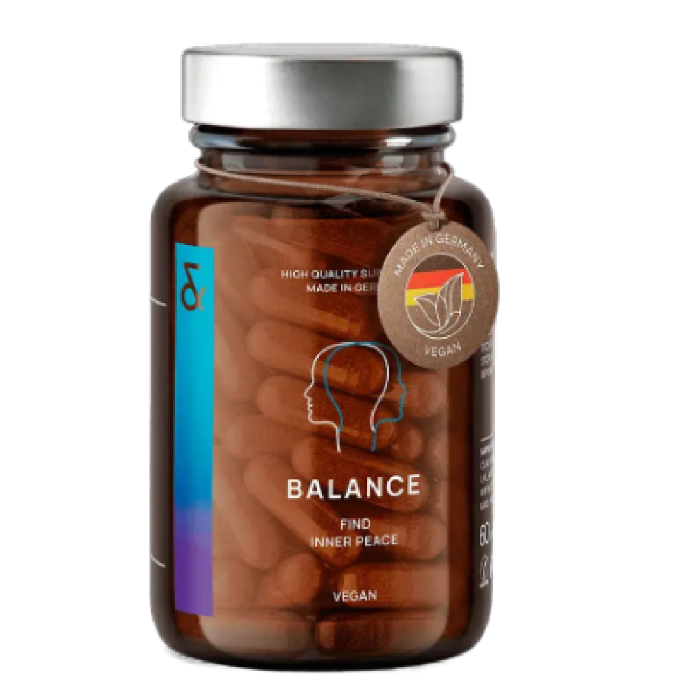Диетическая добавка в форме капсул с растительными экстрактами, витаминами и минералами. Формула Balance разработана для поддержки нервной системы, устойчивости к стрессу и общему эмоциональному равновесия. Содержит витамин B12, способствующий нормальному энергетическому обмену, и магний, который помогает уменьшать нервное напряжение и поддерживает нормальную функцию психики. Комплекс L-триптофана, родиолы розового, витамина B5, а также экстрактов ашваганды и женьшеня обеспечивает мягкий адаптогенный эффект, улучшая стрессоустойчивость, концентрацию внимания и качество сна.