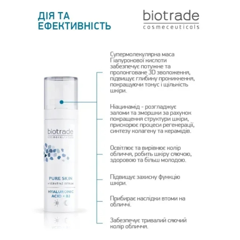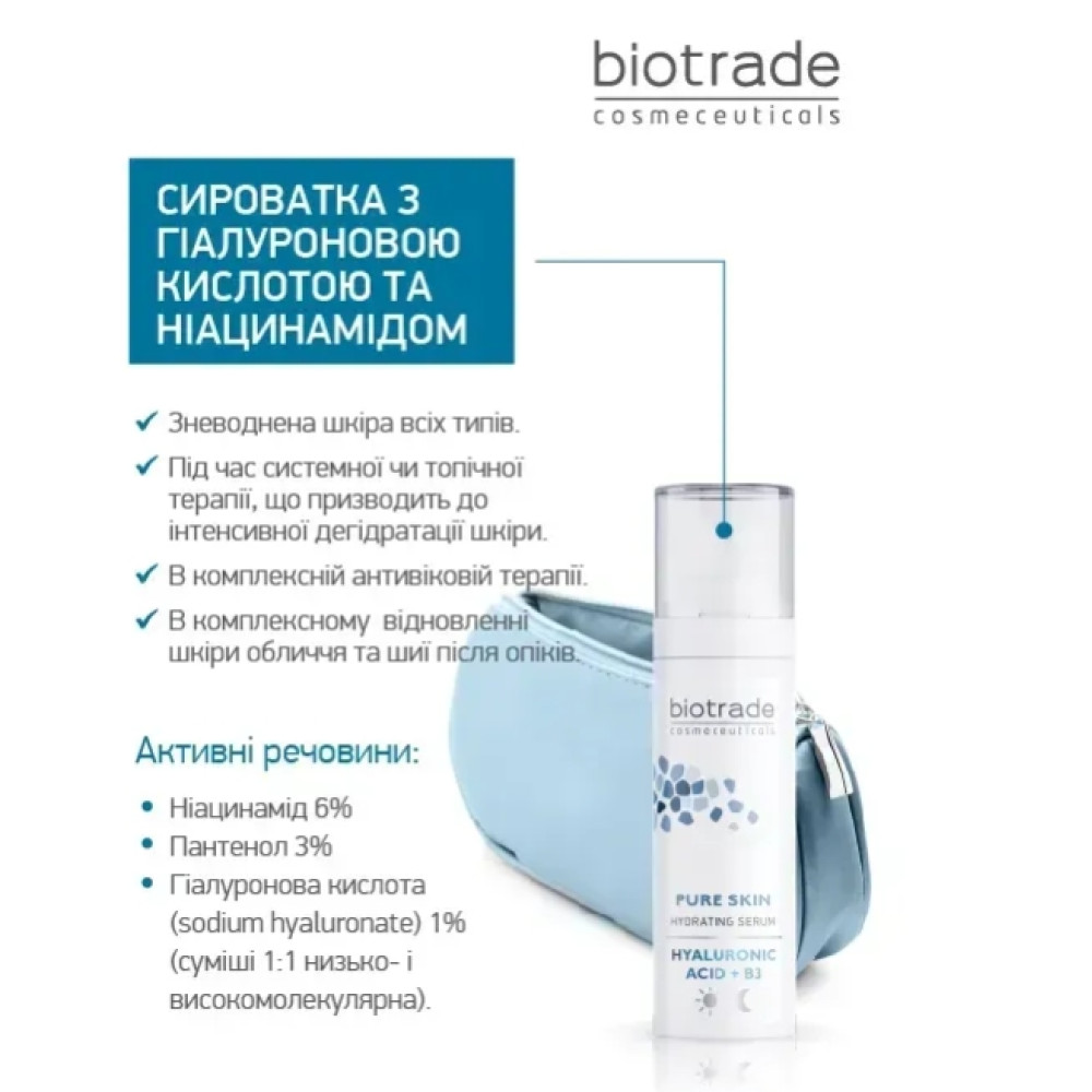 Сыворотка с Гиалуроновой кислотой и Ниацинамидом от бренда дерматологической косметики BIOTRADE - это мощная формула для интенсивного увлажнения и здорового сияния любого типа кожи.