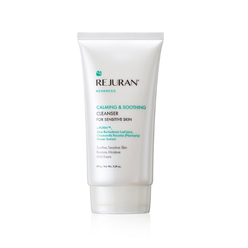 REJURAN Advanced Calming & Soothing Cleanser, 150 мл - усовершенствованный гель для умывания, который бережно очищает кожу лица от загрязнений и избыточного себума, уменьшает раздражение и успокаивает чувствительную кожу. Подходит для всех типов кожи, включая чувствительную и склонную к раздражениям.