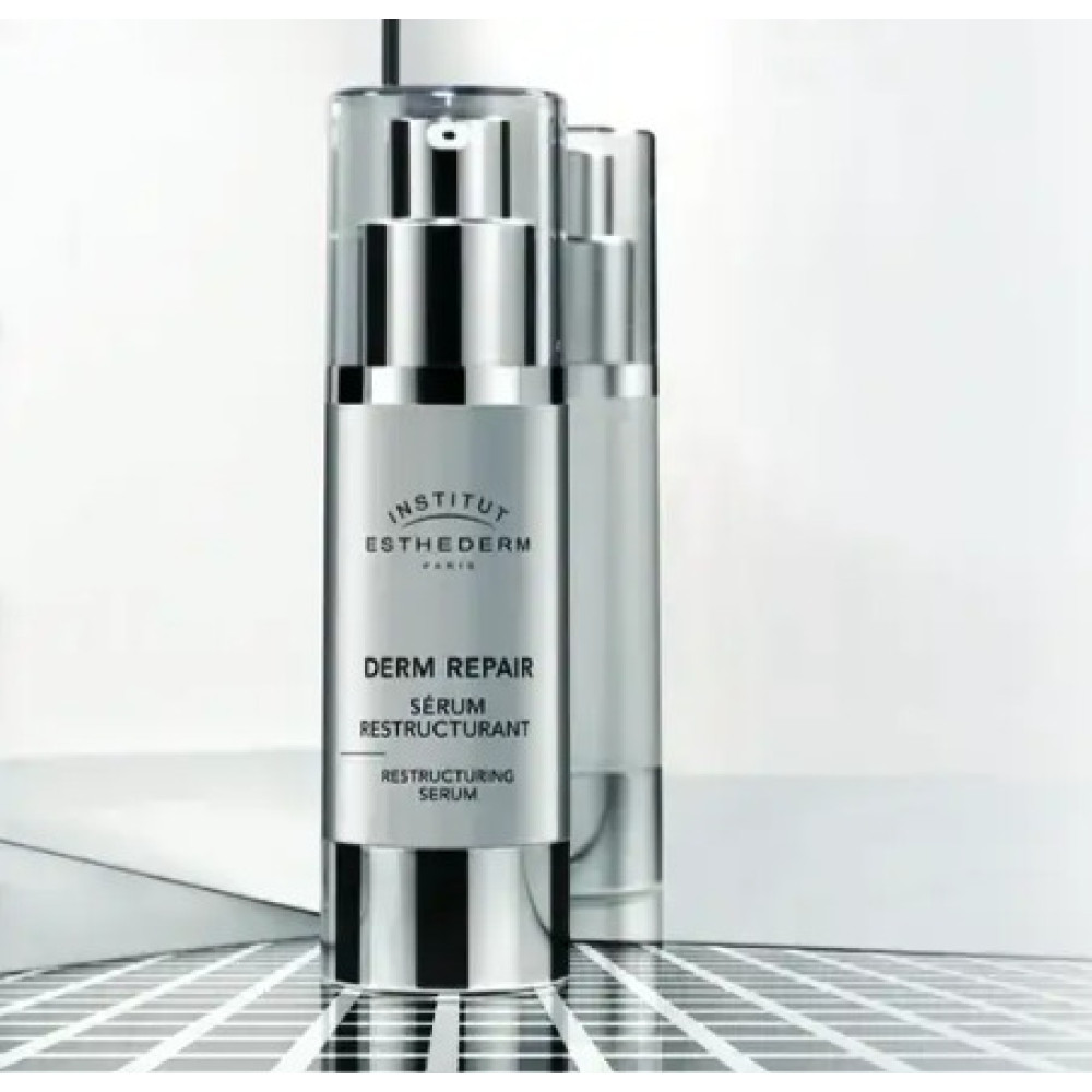 Сироватка Institut Esthederm Derm Repair Restructuring Serum проникает глубоко в кожу, где восстанавливает ее структуру от самого базального слоя, а также укрепляет соединительные ткани. Cтимулирует синтез коллагеновых волокон, надолго укрепляя кожу и корректируя морщины еще до того, как они начнут образовываться.