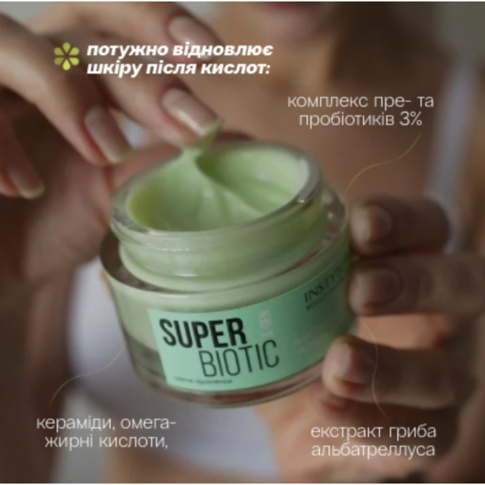 SuperBiotic — это высокоэффективный восстанавливающий и укрепляющий барьерную функцию кожи, помогающий уменьшить раздражение и идеально дополняющий уход с кислотами, витамином С и ретиноидами.