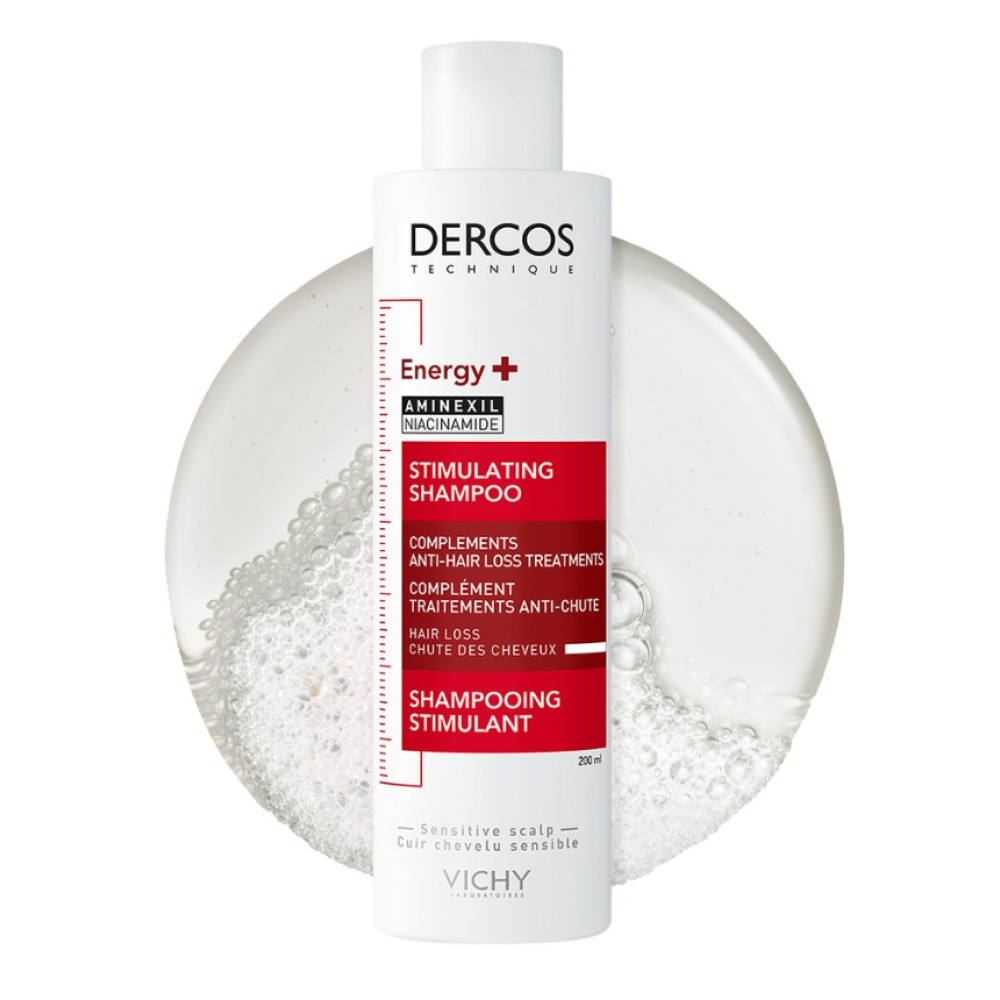 Vichy Dercos Energy+ — зміцнювальний шампунь для всіх типів волосся, збагачений Aminexil — еталонною молекулою, яка допомагає запобігти випадінню волосся.